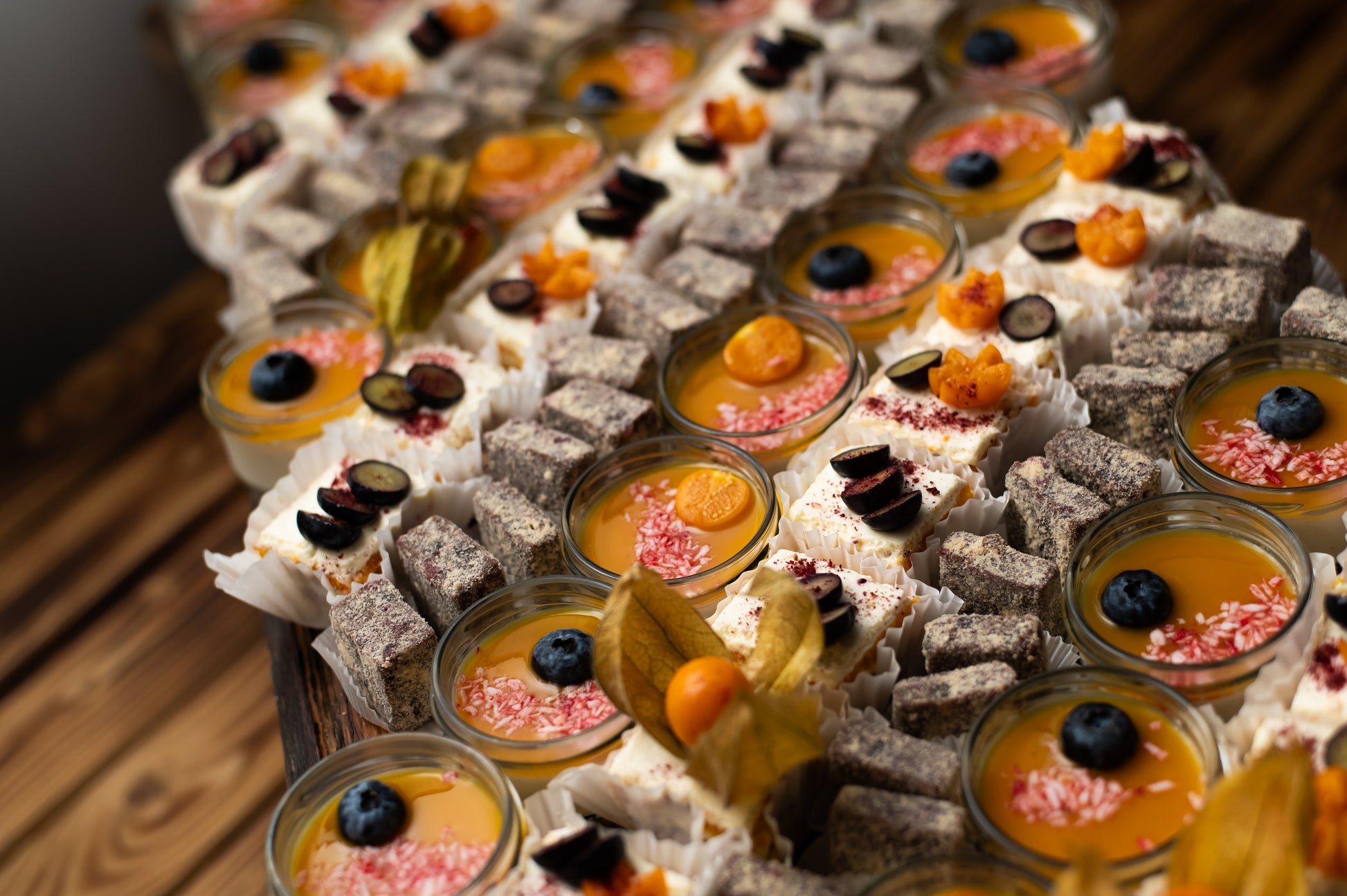 Koostisosad: küpsis (Nisujahu, suhkur, taimne rasv, muna, invertsuhkrusiirup, kondenspiim, sool, kergitusaine (E500, E503), vanilliin, lõhna- ja maitseaine.), kondenspiim (PIIM (78,17%), suhkur (13,98%), RÕÕSK KOOR, LAKTOOS.), või (värske piim, rõõsk koor), kuivatatud jõhvikad (jõhvikas, suhkur, päevalilleõli, sidrunhape (E330)), marmelaad (marmelaad, suhkur, glükoosisiirup, tarretusaine (pektiin), happesuse regulaator: sidrunhape, lõhna- ja maitseained: maasikas, õun, must sõstar, aprikoos, porgandiekstrakt, looduslikud toiduvärvid: E141, karoteen, kurkumiin. Toode võib sisaldada MAAPÄHKLEID.), kakao, vana tallinn