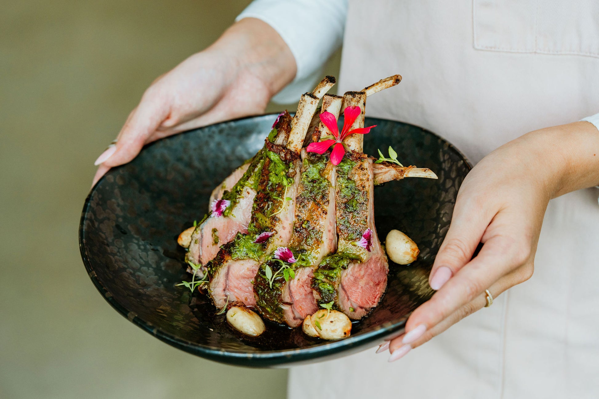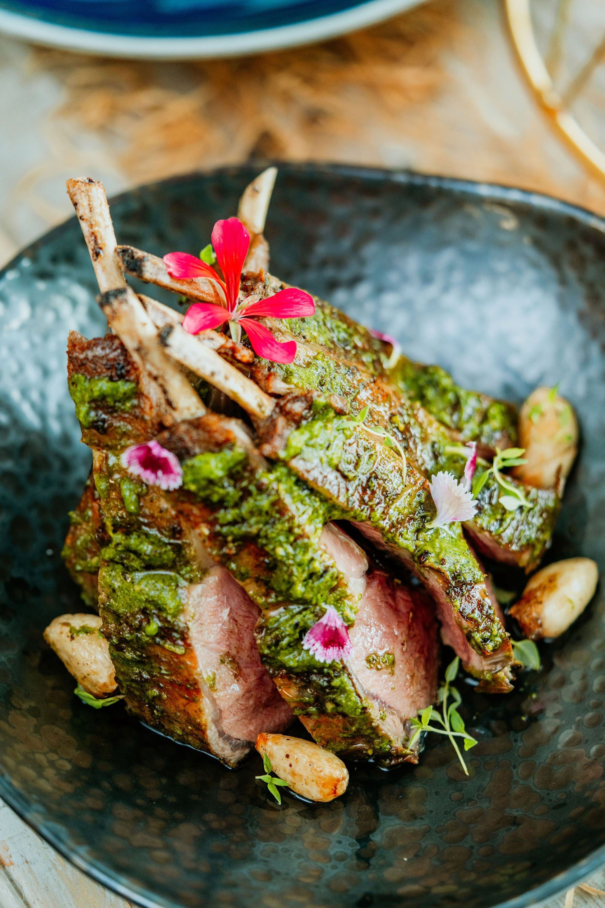 Koostis: lambakarree lõige (Eesti), õli (100% rafineeritud rapsiõli, päevalilleõli), pesto (värske basiilik, värske petersell, küüslauk, sool, õli (100% rafineeritud rapsiõli, päevalilleõli), forte juust (PIIM, juuretis, tardaine kaltsiumkloriid, meresool, säilitusaine KANAMUNA LÜSOTSÜÜM. Rasva kuivaines ≥39%)), küüslauk