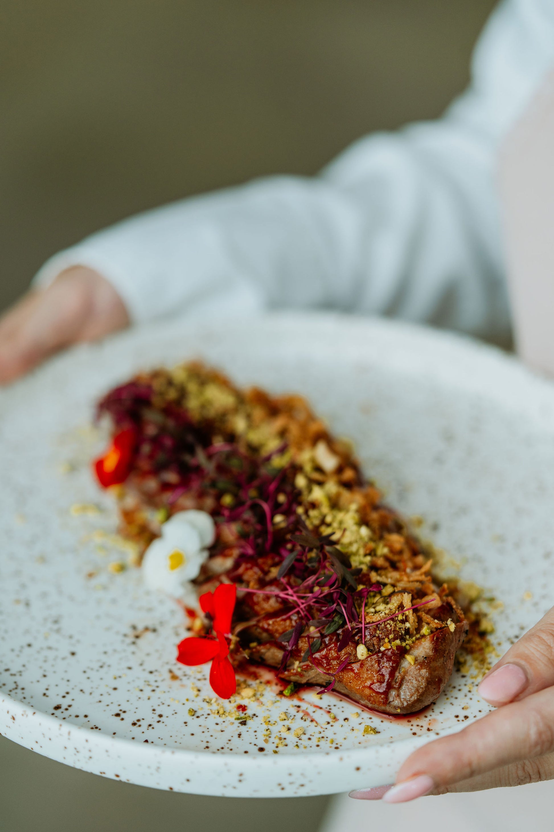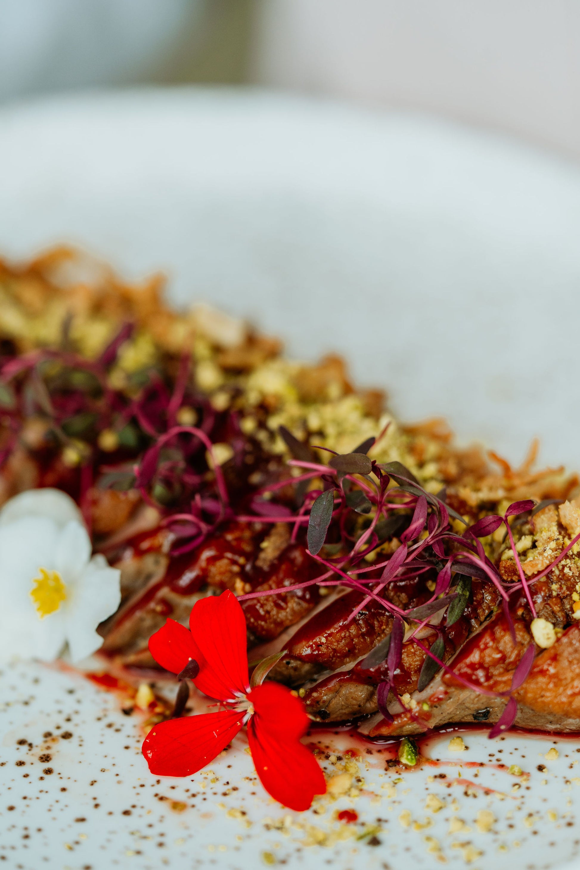 Koostis: pardi rinnafilee, sool, must pipar, punasesõstra mop (punane sõstar, punane vein, suhkur, või, sool), pistaatsiapähkel